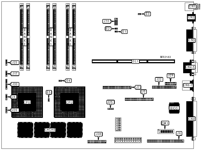Floppy drive interface, IDE interface, parallel port, PS/2 mouse port, serial ports (2), SCSI port, SCSI interface, 10 base-T port, 10 base-5 port