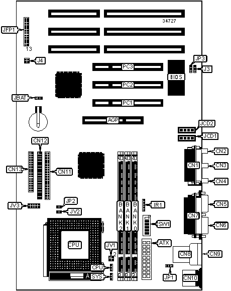 Note: The location of J2 & JP4 is unidentified. | |||