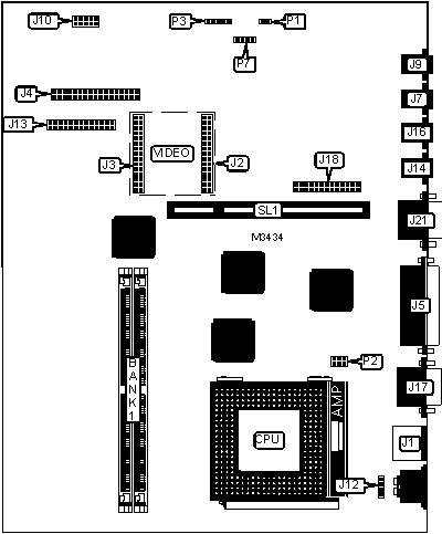 Note: Bank 0 is factory installed and is not configurable. The location is unidentified. Board also accepts x 32 SIMMs. Board accepts EDO memory. | ||