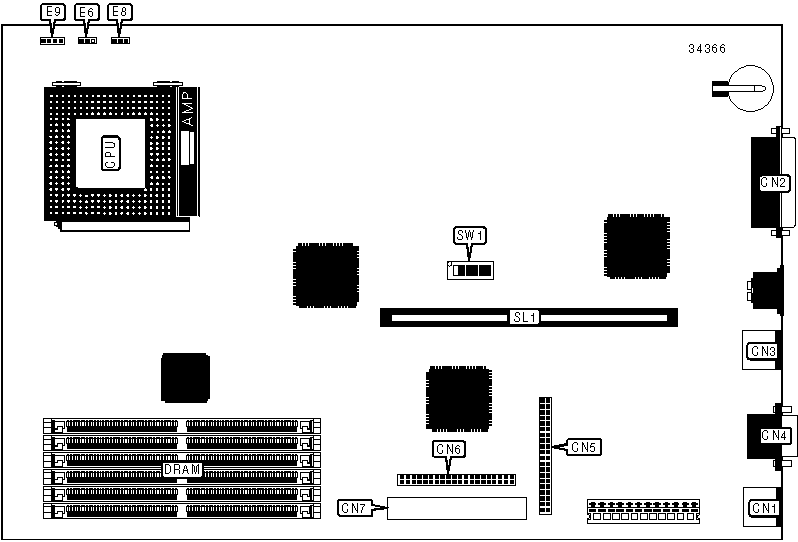 Note: The location of banks 0, 1 & 2 are unidentified. Board accepts EDO memory. |