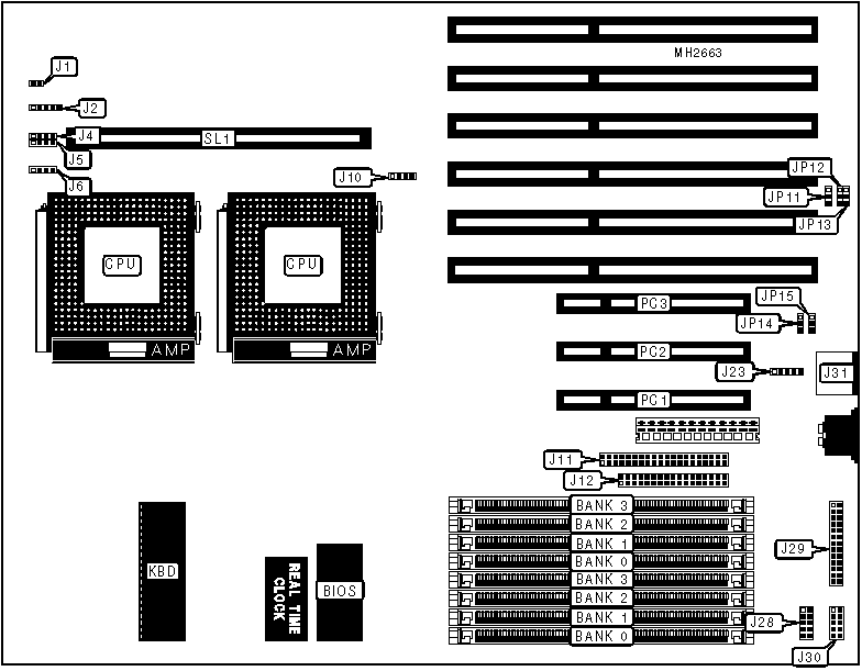 External cache card, 32-bit PCI slots (3), floppy drive interface, IDE interface, parallel port, PS/2 mouse port, PS/2 mouse interface, serial ports (2)