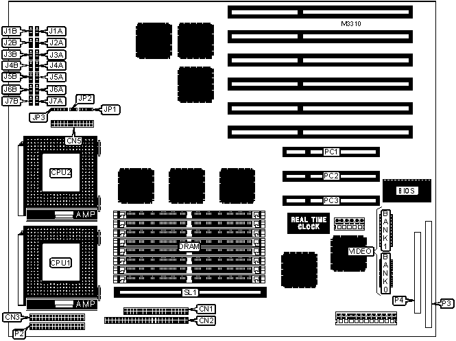 32-bit PCI slots (3), floppy drive interface, IDE interface, SCSI interfaces (2), parallel port, PS/2 mouse interface, serial ports (2), server monitor feature connector, VGA interface, cache slot