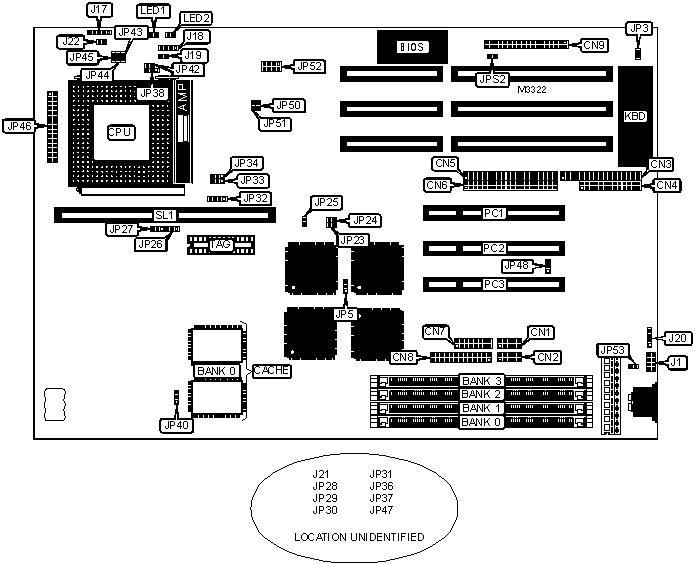 Note: Board accepts EDO memory. Board also accepts X 32 SIMMs. If only Bank 1 or Bank 3 is populated, x 32 SIMMs must be used.