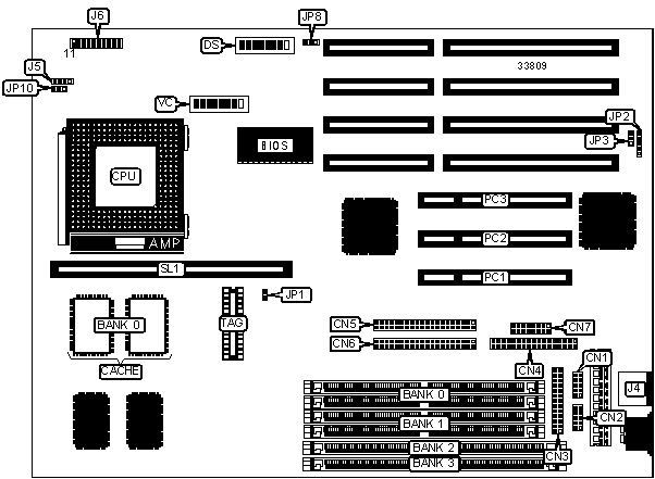 Note: Banks 2 & 3 are interchangeable. If using this configuration, SIMM sockets must be empty.
