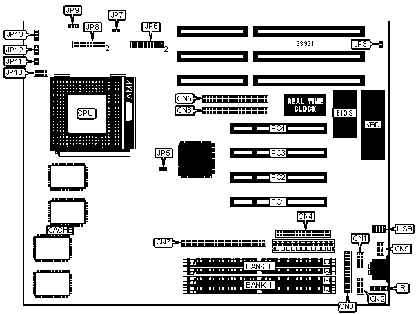 Note: Board accepts EDO memory. Board also accepts x 32 SIMMs. | ||