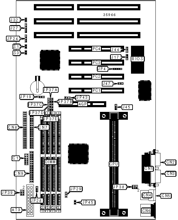 Note: Pins designated should be in the closed position. If the above jumpers are set to manual, remove jumper at JP45.